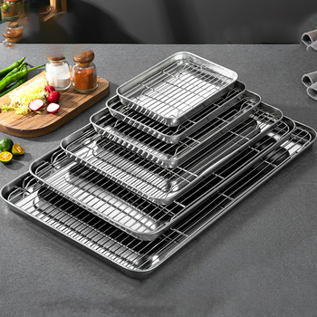 Atacado de alta qualidade segurança alimentar 18/10 aço inoxidável cozinha multifunções assar bandejas rack pan set