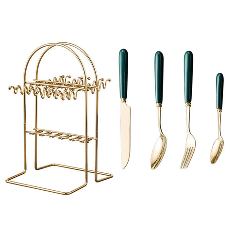 Набор ложек и вилок золотого цвета для украшения кухни и гостиницы в европейском стиле SUS 410, 24 шт., со стойкой