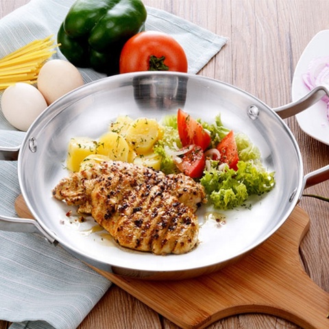 Сковорода антипригарная из нержавеющей стали с двойной ручкой