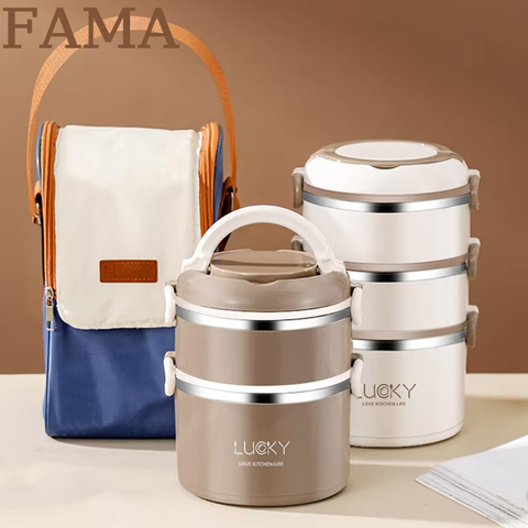 Fama กล่องอาหารกลางวันเก็บความร้อนพร้อมถุงเก็บของกันความร้อนทำจากสเตนเลสมีหลายชั้นทำจาก PP + ยัดโฟม + 304สำหรับใช้กลางแจ้งบ้าน