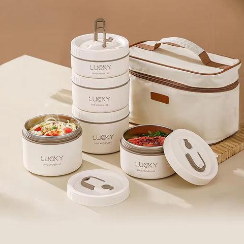 ชุดกล่องข้าวเก็บความร้อนทำจากสแตนเลสหลายชั้นพร้อมถุงใส่อาหารกันความร้อนทำจากวัสดุ PP + 304